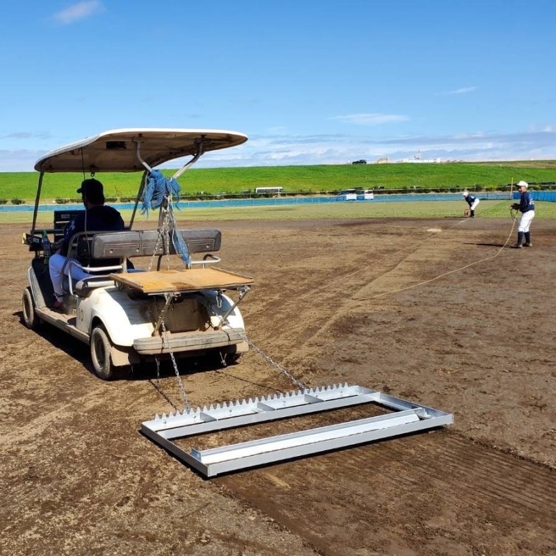 グラウンドを掘り起こし・転圧が同時に出来る。