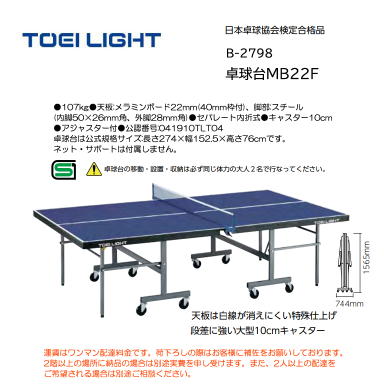運賃はワンマン配達料金です。荷下ろしの際はお客様に補佐をお願いしております。2階以上の場所に納品の場合は別途実費を申し受けます。また、2人以上の配達をご希望される場合は別途ご相談ください。卓球台の移動・設置・収納は必ず同じ体力の大人2名で行なってください。