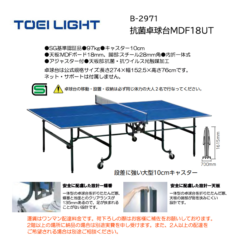 トーエイライト 抗菌卓球台MDF18UT B-2971