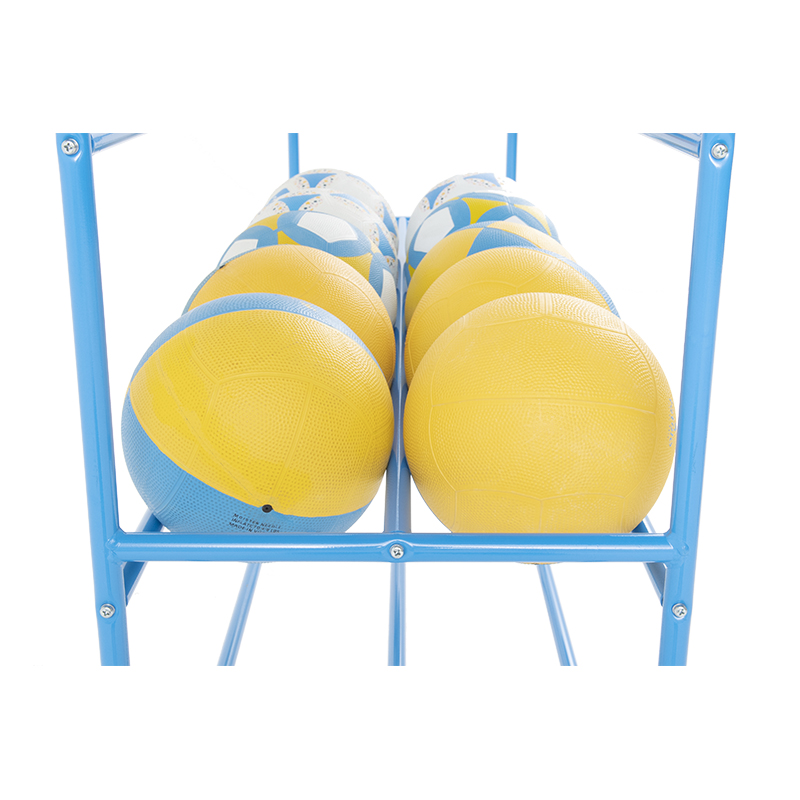 上段にのみ0~1号球(直径15~16cm)を8個収納。下段3段の両面部に直径22cm球で36個収納可能な仕様となっています。キャスター付きで移動も楽々。