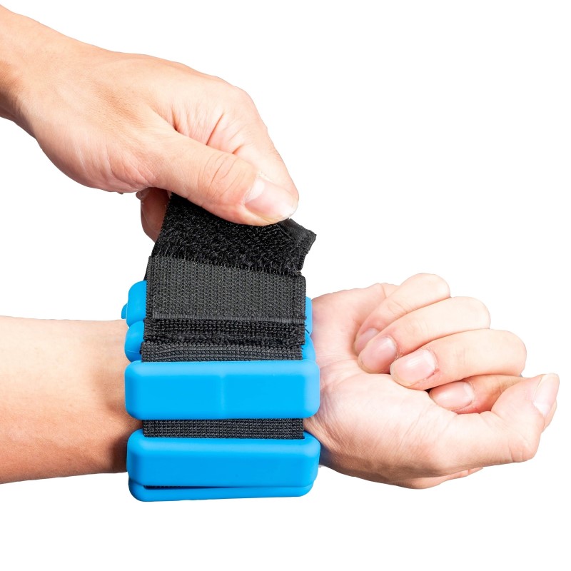 ゴムベルトで手首・足首どちらにも装着可能です。オモリは1個60gで、最大480gの負荷が可能です。ご自身の体調などで重さを120gから60g刻みで調整出来ます。