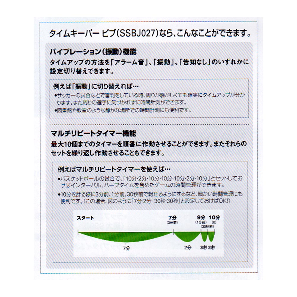(1) タイムアップを振動で報せられるので、