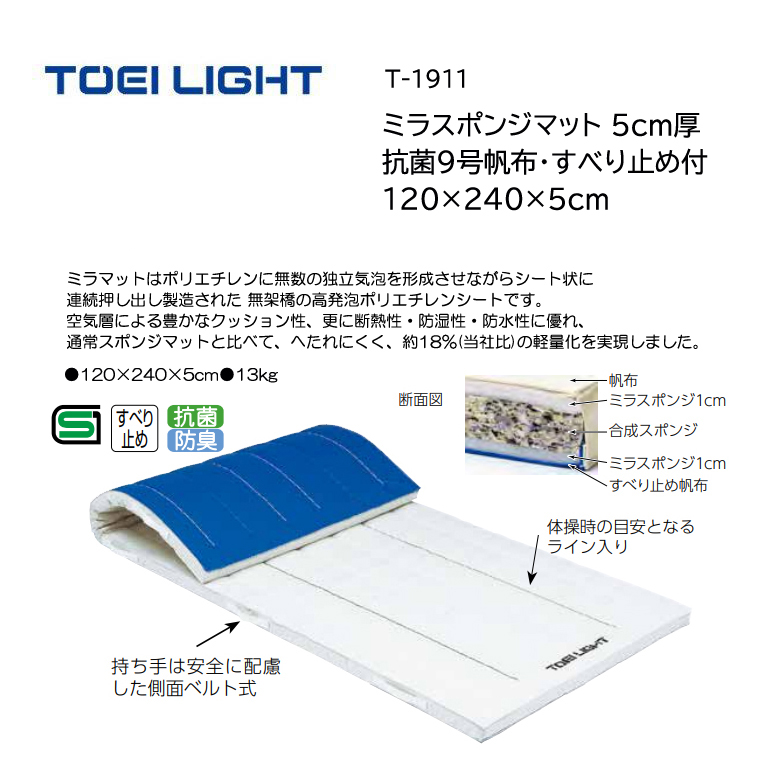 トーエイライト ミラスポンジマット 5cm厚 9号帆布・すべり止め付 120×240×5cm T-1911