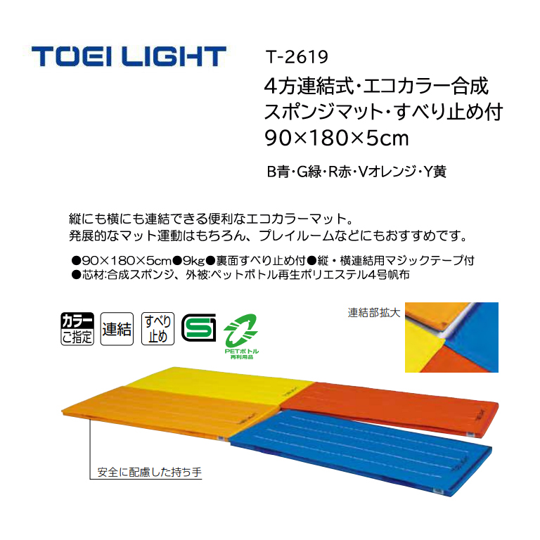 トーエイライト 4方連結式・エコカラー合成スポンジマット・すべり止め付 90×180×5cm T-2619