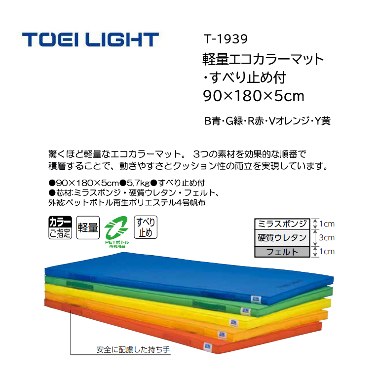 トーエイライト 軽量エコカラーマット・すべり止め付 90×180×5cm T-1939