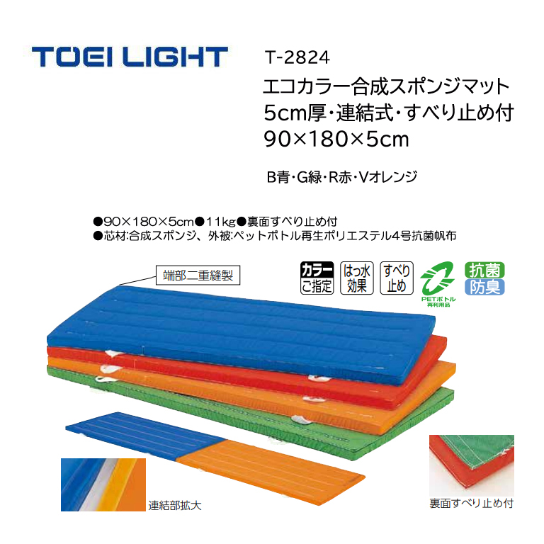 トーエイライト エコカラー合成スポンジマット 5cm厚・連結式・すべり止め付 90×180×5cm T-2824