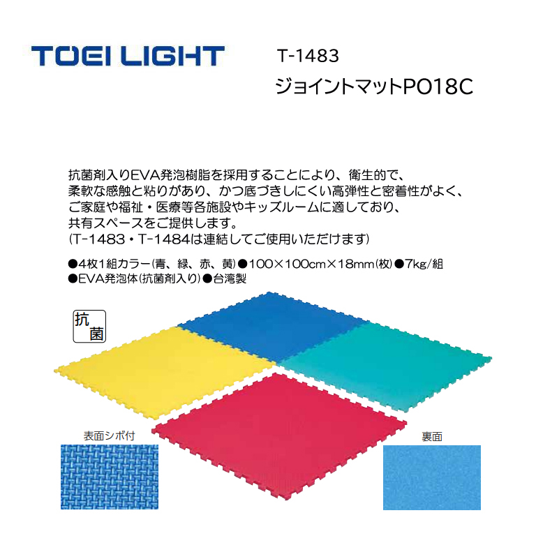 ●4枚1組カラー(青、緑、赤、黄)●100×100cm×18mm(枚)●7kg/組●EVA発泡体(抗菌剤入り)●台湾製