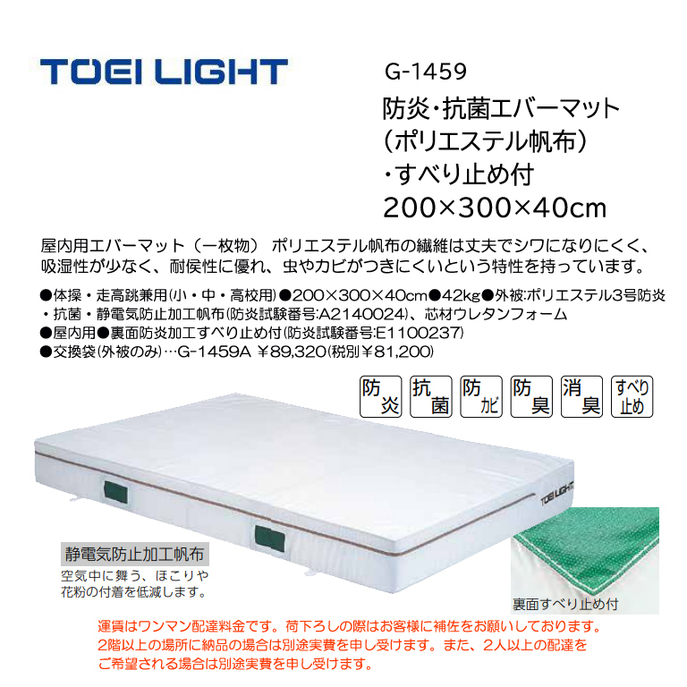 トーエイライト 防炎・抗菌エバーマット(ポリエステル帆布)・すべり止め付 200×300×40cm G-1459