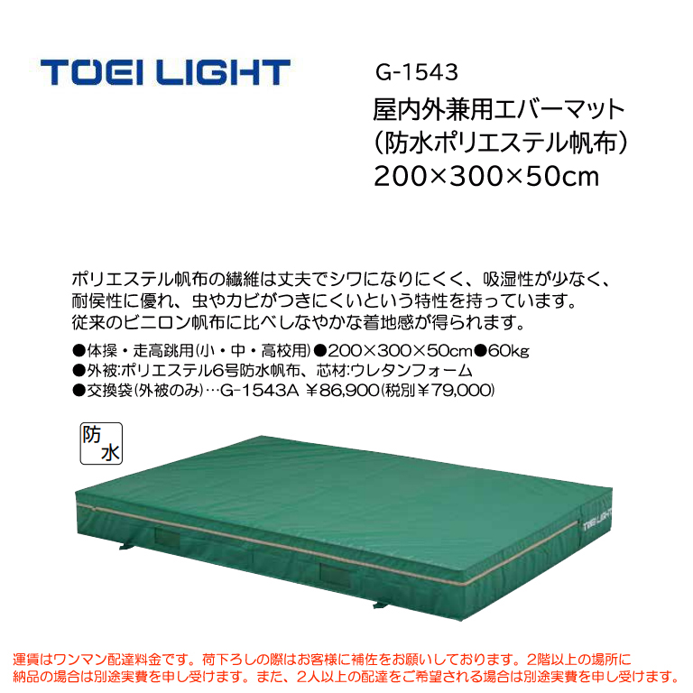 ●体操・走高跳用(小・中・高校用)●200×300×50cm●60kg●外被:ポリエステル6号防水帆布、芯材:ウレタンフォーム●交換袋(外被のみ)…G-1543A ¥86,900(税別¥79,000)