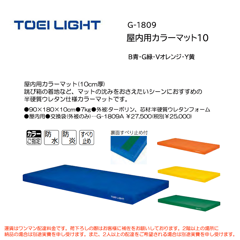 ●90×180×10cm●7kg●外被:ターポリン、芯材:半硬質ウレタンフォーム●屋内用●交換袋(外被のみ)…G-1809A ¥27,500(税別¥25,000)