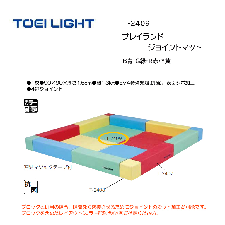 ●1枚●90×90×厚さ1.5cm●約1.3kg●EVA特殊発泡(抗菌)、表面シボ加工●4辺ジョイント
